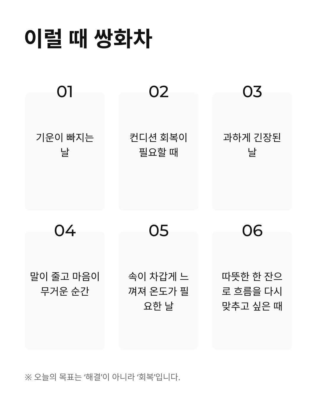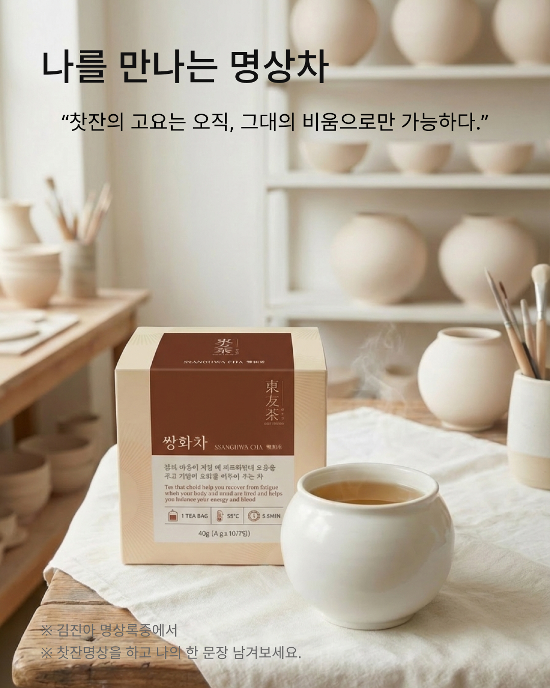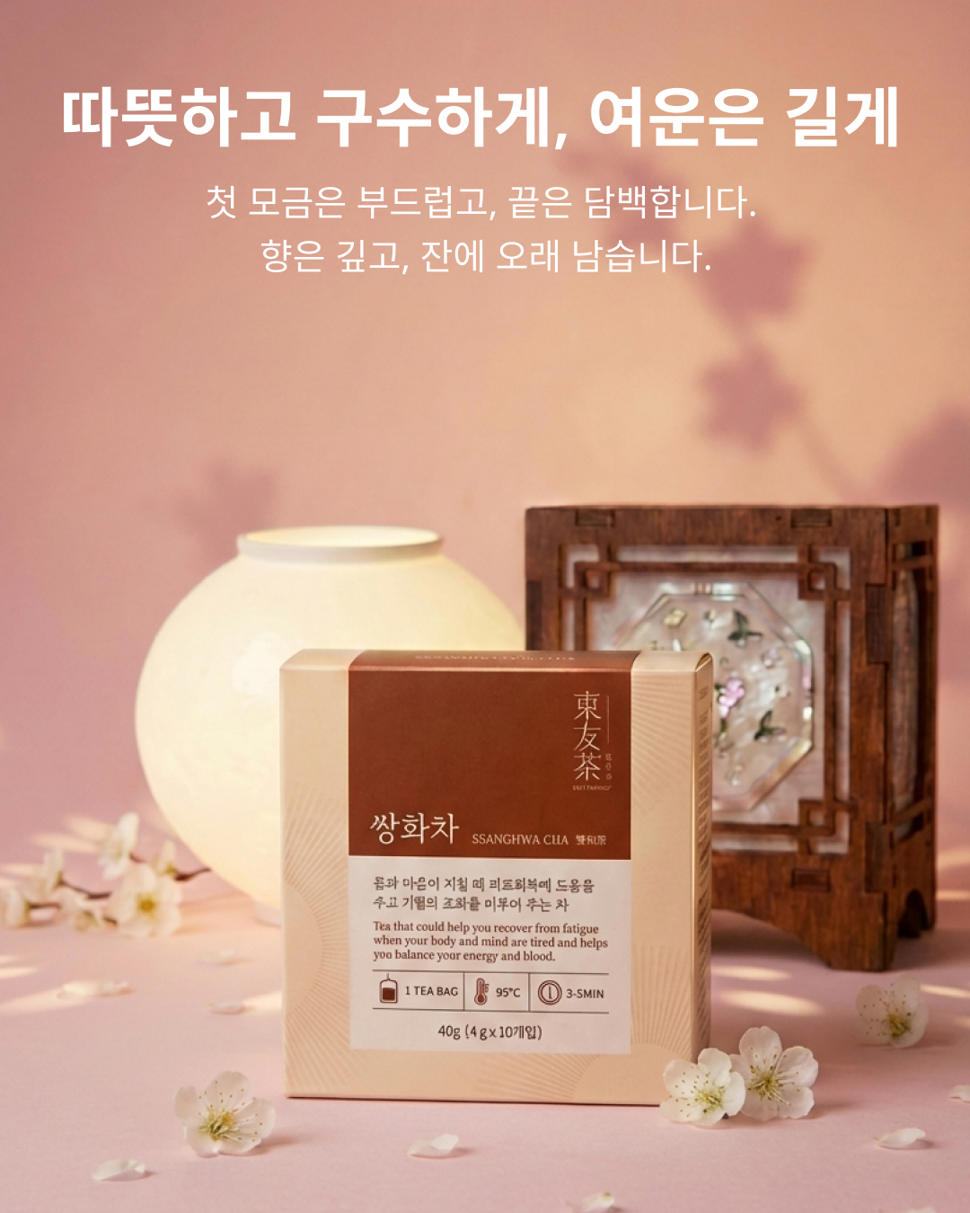 단순한 차를 넘어선 회복의 시간. 명상 아티스트 김진아의 최적 블렌딩으로 완성된 이스트프렌즈 쌍화차입니다.