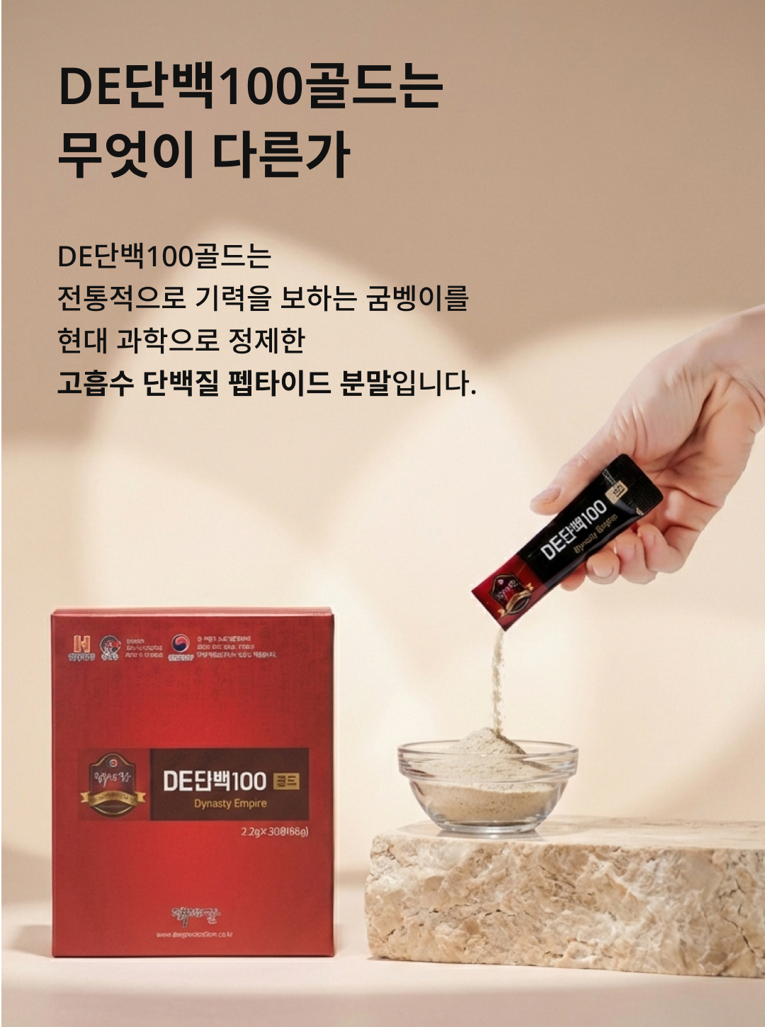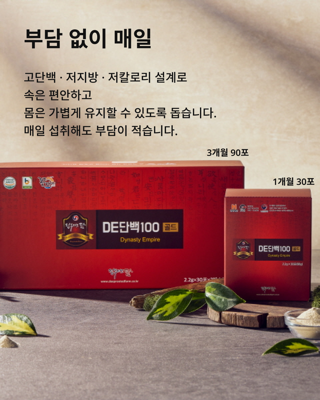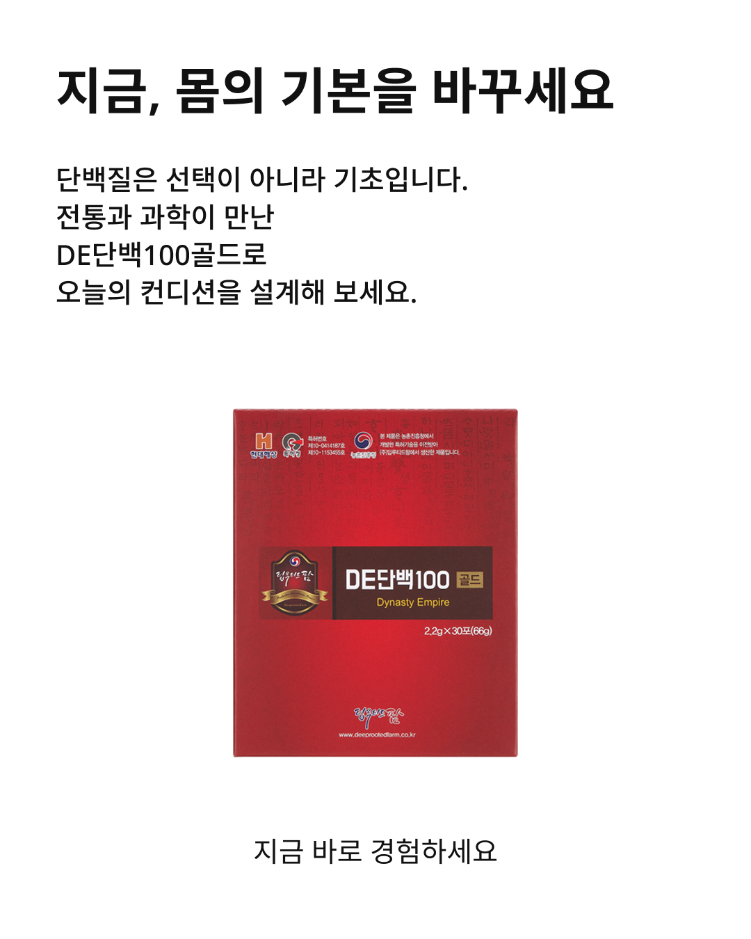 운동을 못해도 식사로 부족한 단백질을 하루 한 포로 간편하게 보완하세요. DE단백100골드 프리미엄 단백질 루틴, 40+ 일상·가족 루틴에 추천.